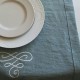 Ideale per una tavola dai colori estivi, fresca ed elegante il runner in morbido lino color acquamarina impreziosito dal decoro ricamato in panna.